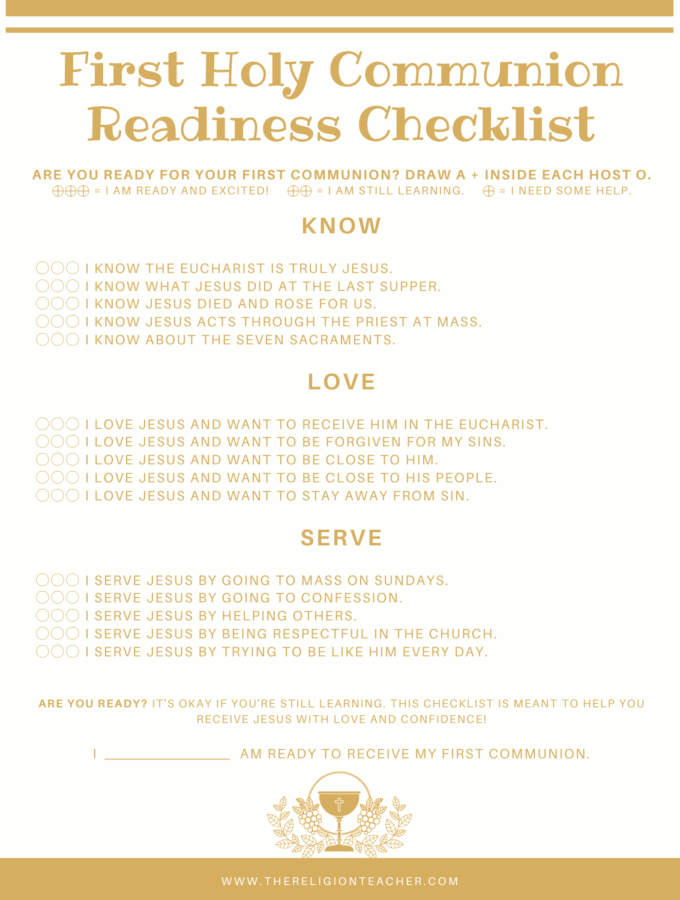 Are your students ready for their First Holy Communion? Give them the First Communion Readiness Checklist. Based on the classic catechetical formula to know, love, and serve God, students will assess their own knowledge and love for the Lord. It is important to know that their answers do not disqualify them from receiving their First…